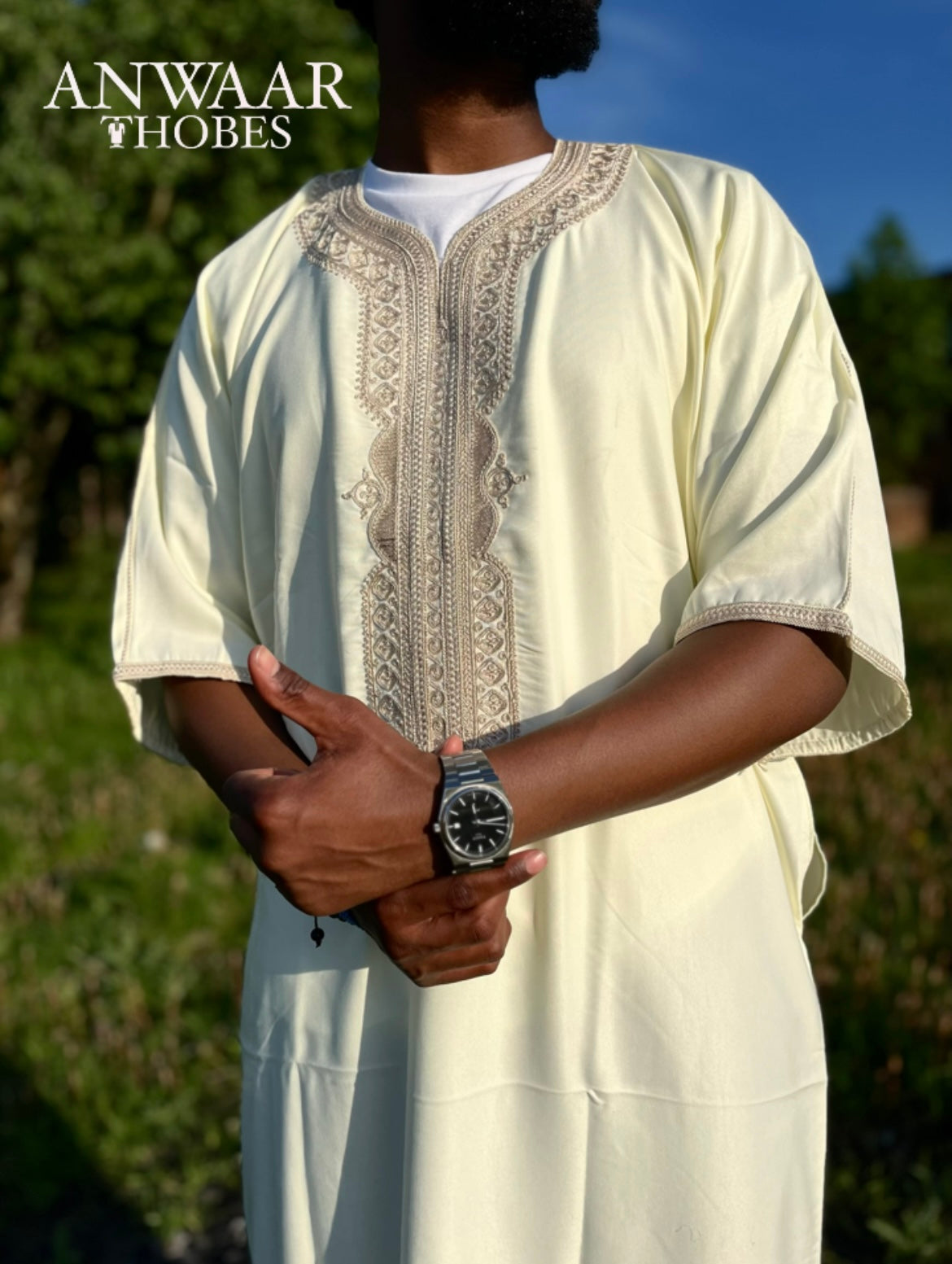 This Off White Beige Gandoura blends traditional Moroccan style with a modern touch. It is made from breathable, premium fabric. The color adds timeless sophistication, perfect for any occasion. Lightweight and comfortable, it keeps you cool while looking effortlessly stylish.